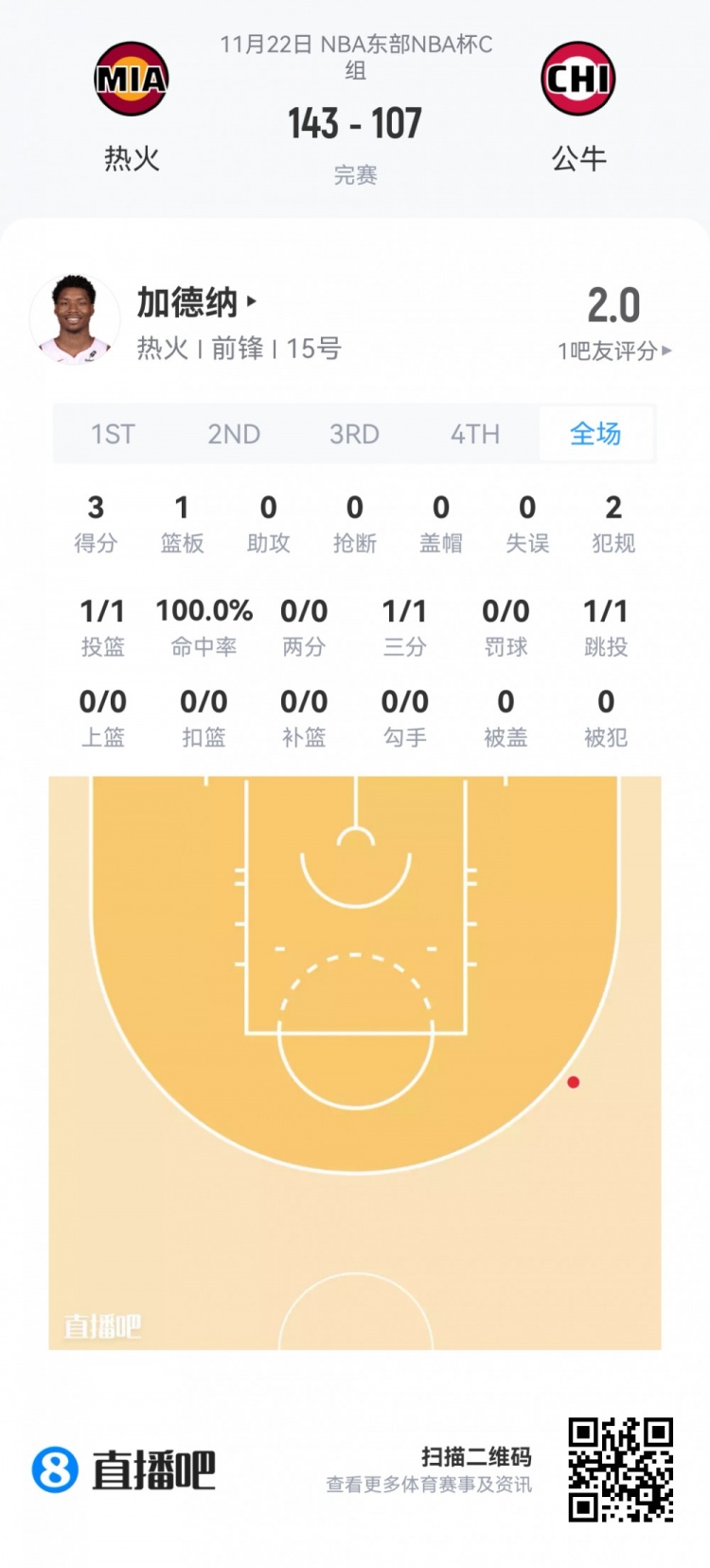 Myron Gardner, kém cỏi bởi Heat, Chơi trong 4,9 phút