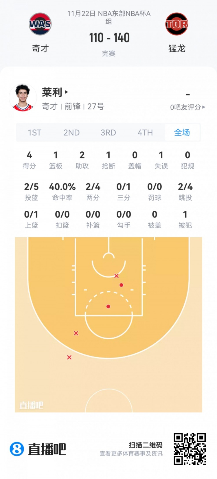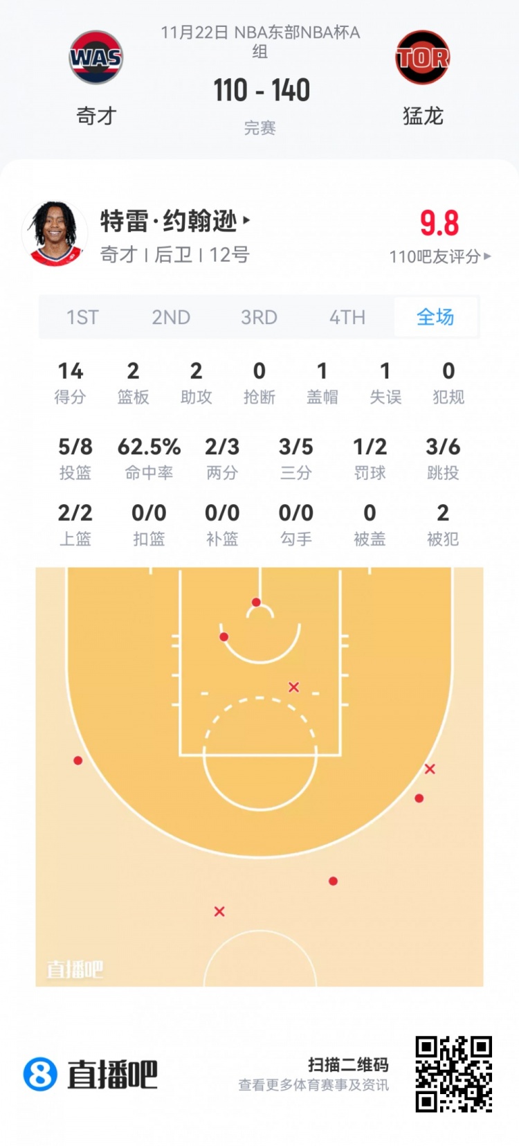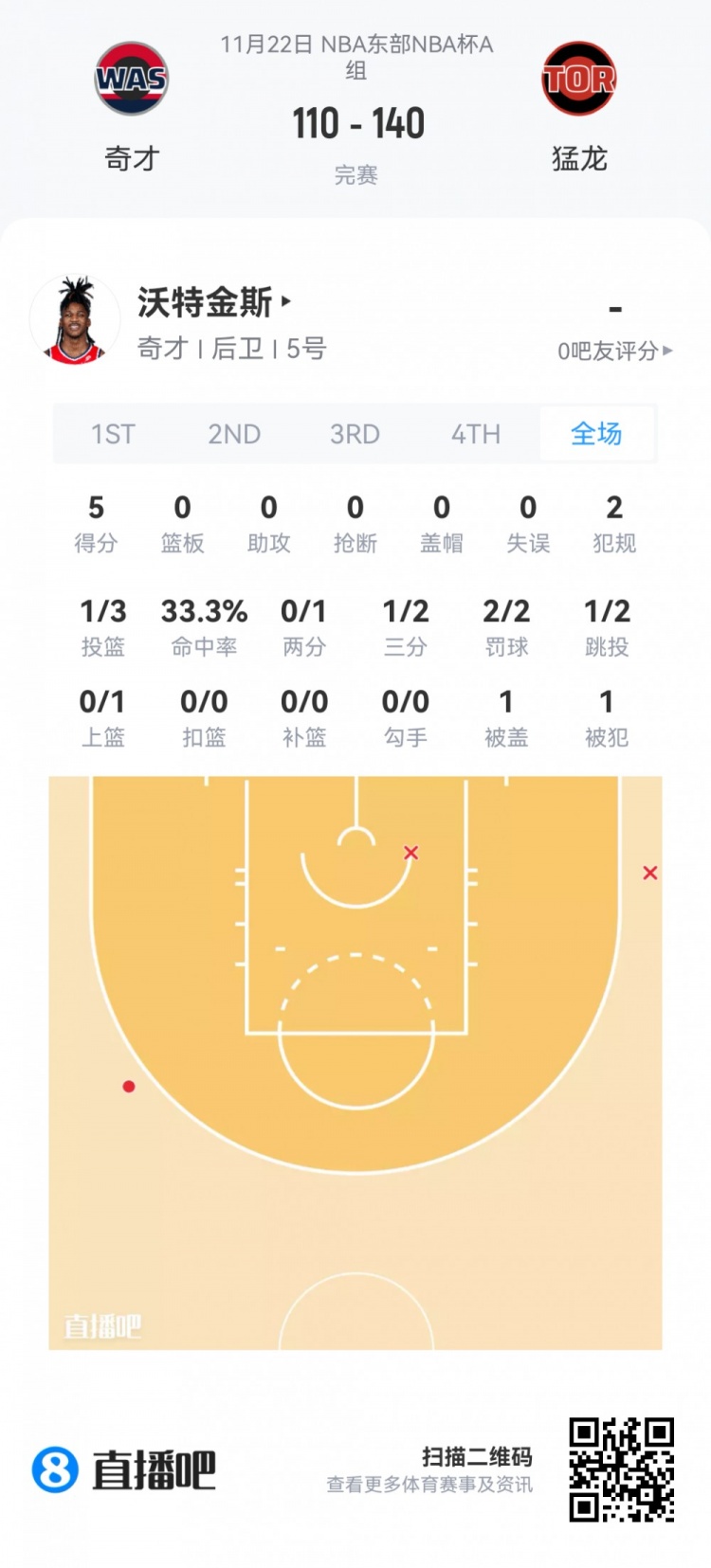 Jameer Watkins, lượt chọn số 43 ở vòng hai của Wizards, chơi trong 9,3 phút