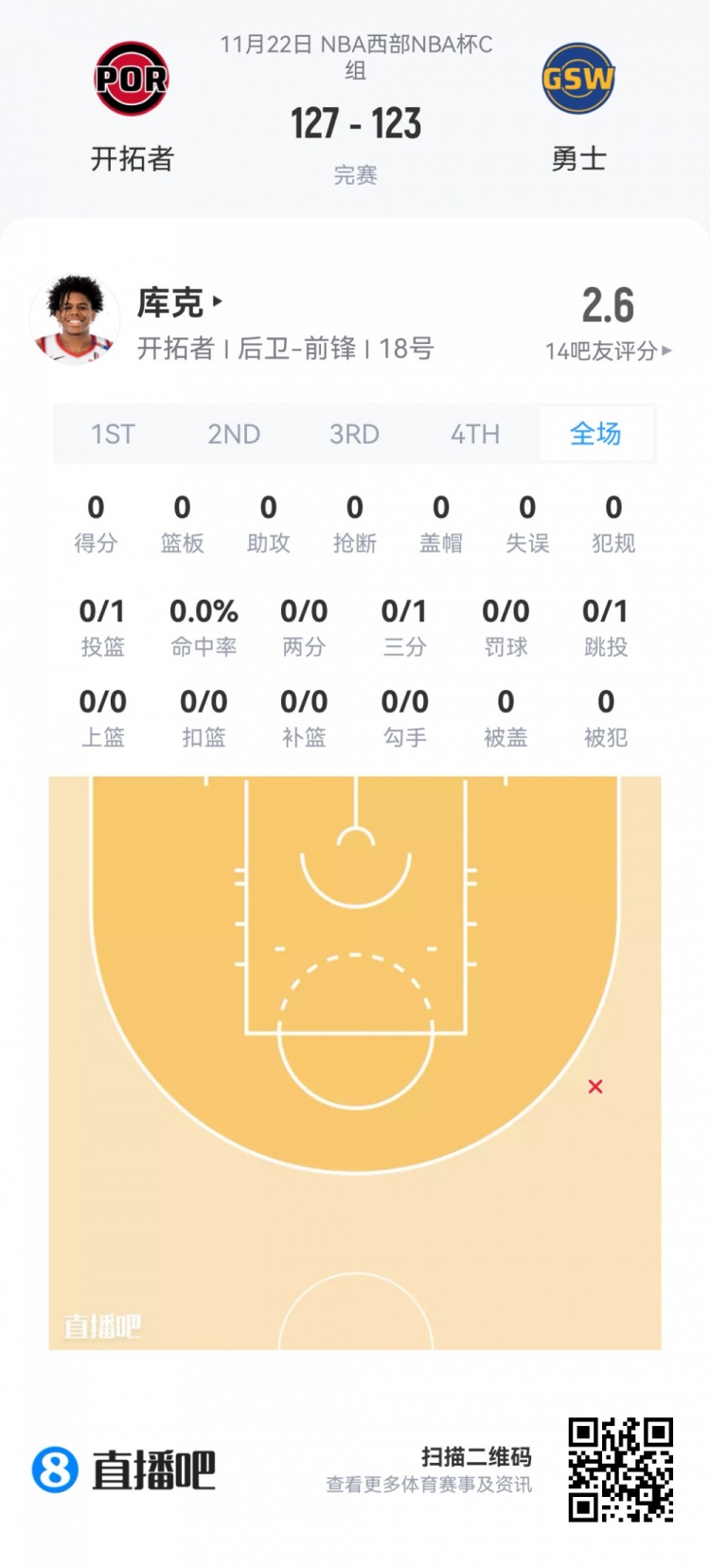 Jawante Cook, tuyển thủ chưa được tuyển chọn của Trail Blazers, xuất hiện trong 1,8 phút